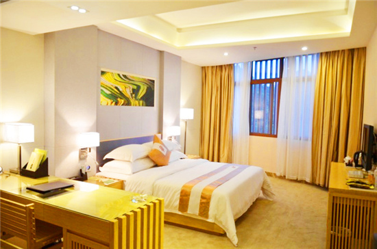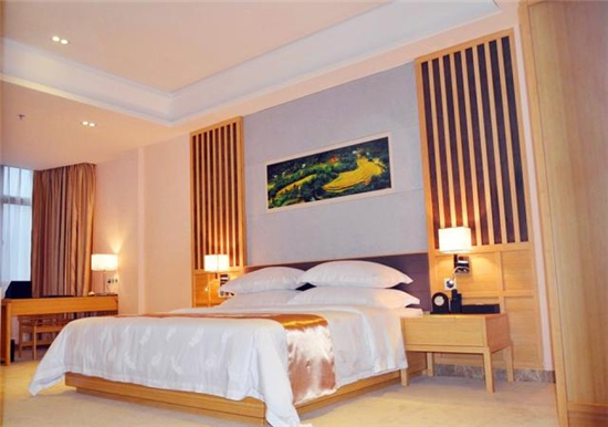 擁有高級單人房、高級雙人房、套房等雅致、舒適、溫馨的各類豪華客房共計100間套,房間設施設備完善,設有電子門鎖系統(tǒng)、程控電話、液晶寬屏彩色數(shù)字電視、自動電熱水壺、24小時冷熱水供應系統(tǒng)、保險箱、小冰箱、寫字臺、空調等,客房提供寬帶網(wǎng)絡接口,免費寬帶上網(wǎng)。酒店附設中餐廳、休閑中心、會議室、健身室、康樂室、多功能廳、商務中心、特產(chǎn)超市、展示廳、停車場等配套綜合服務設施以及全方位的個性化服務、極力為賓客營造便捷、高效、舒適、愜意 的環(huán)境。