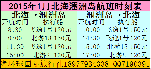 2015年一月份潿洲島航班時(shí)刻表(正常班點(diǎn)):