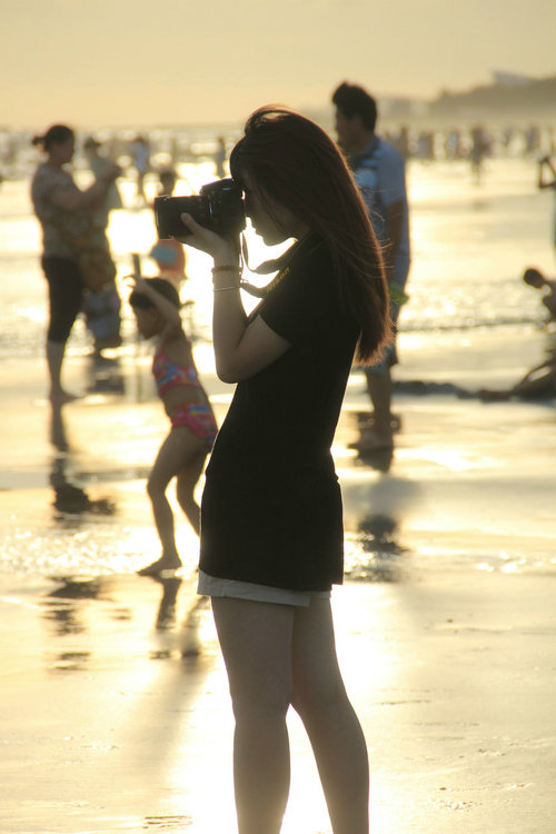 網(wǎng)友悠閑樂逸是北海的一名業(yè)余攝影愛好者,被眾多網(wǎng)友戲稱為一匹扛著相機混跡在銀灘各個角落的狼,因為他最大的愛好就是去銀灘發(fā)現(xiàn)“美”。正如悠閑樂逸說的:“來北海除了享受陽光沙灘海浪等之外,最大的亮點就是可以在海灘上看到全國各地成群的靚女,看到你眼睛脫敏為止~~~~可以有效治療斜眼,斗雞眼等眼類疾病哈~~~也可以心跳提速進行有養(yǎng)呼吸哦~~”
