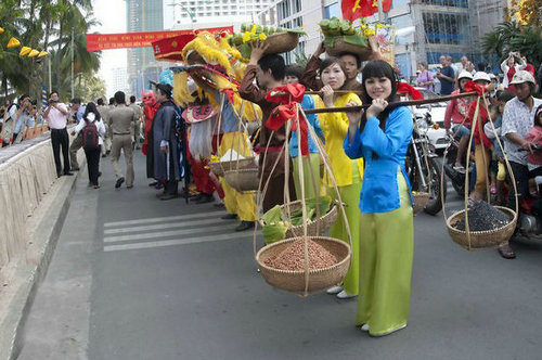 除了親友間互相拜訪,新春期間越南各地街頭、公園和公共娛樂場所,連續(xù)幾天舉行各種文娛活動(dòng),演出越南傳統(tǒng)戲劇、歌舞、雜技、武術(shù)、摔跤、舞獅等,還有蕩秋千、下人棋、斗雞、斗鳥等民間活動(dòng),整個(gè)越南沉浸在節(jié)日氣氛之中。