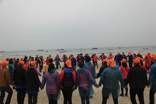一百八十多名客人一下子給北海初春平靜的海灘帶來了無限活力,在專業(yè)教練的帶領(lǐng)下大家互相信任,團結(jié)協(xié)作玩起了集體游戲,天空突然飄下幾滴小雨來湊熱鬧,但很快就又消失在大家的歡聲笑語中。
