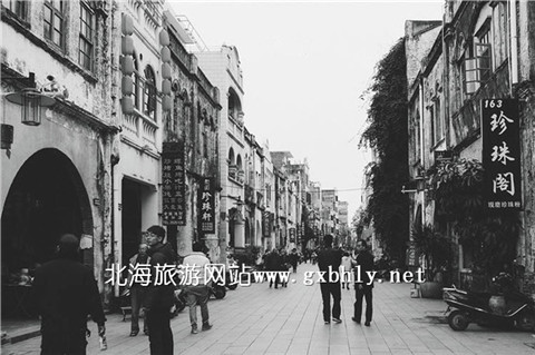北海老街一般指中山路和珠海路,是一條有一百多年歷史的老街,始建于1883年,長1.44公里,寬9米,沿街全是中西合璧騎樓式建筑。吸收了嶺南建筑的特點(diǎn),又吸收了西方建筑的風(fēng)格。