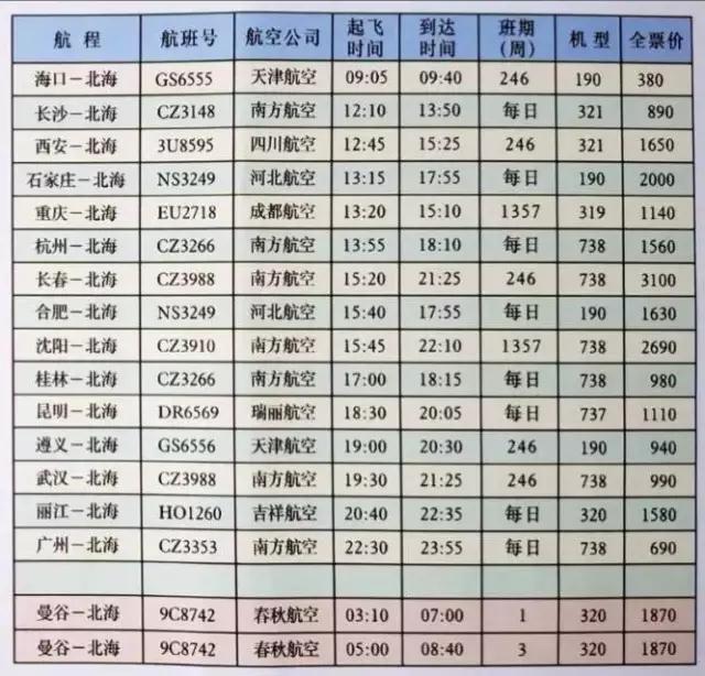2017年北海機(jī)場(chǎng)夏秋季