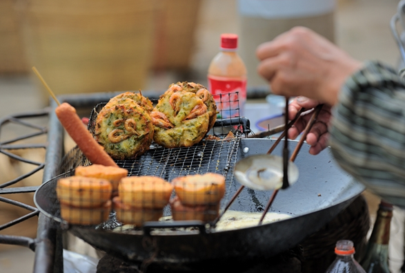 百年老街斑駁的外表下寫滿滄桑的街道兩旁店家鱗次櫛比,氣派的林立著天主教堂、藥堂、特色酒吧、海味特產(chǎn)店、茶坊等等構(gòu)成了老街的特色。你可以和戀人小資情調(diào)地坐在羅馬建筑風(fēng)格的餐廳吃意大利面,斟酌一小杯法國紅酒,在留言墻涂鴉。如果你是獨(dú)自旅行,可以排著長隊(duì)等一份《轉(zhuǎn)角遇到愛》中提到的風(fēng)靡臺(tái)灣的地道小吃---蚵仔煎,說不定會(huì)來一場華麗的邂逅。另外,最值得推薦的是北海特色蝦子餅。