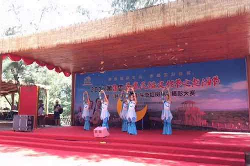 上午10點(diǎn),隨著主持人宣布第三屆疍家民俗文化節(jié)之趕海節(jié)暨“魅力金海灣·生態(tài)紅樹林”攝影大賽開機(jī)儀式正式開始,身著特色服飾的疍家姑娘和小伙們一起為游客獻(xiàn)上一場(chǎng)別有風(fēng)味的疍家民俗風(fēng)情歌舞表演,在不斷變換的歌聲里,疍家姑娘和小伙們用精彩的舞蹈講述了動(dòng)人的疍家民間傳說。