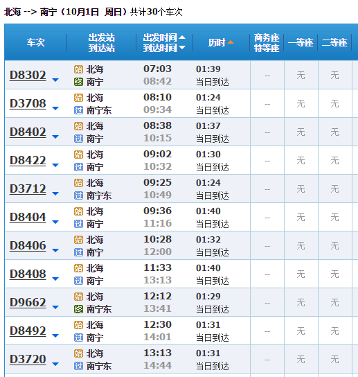廣西北海旅行社網(wǎng)9月26日訊 根據(jù)南寧鐵路局的最新通知,2017年9月29日—10月9日期間,南寧至北海將加開4趟動(dòng)車組,滿足國(guó)慶假期市民游客出行的需要。