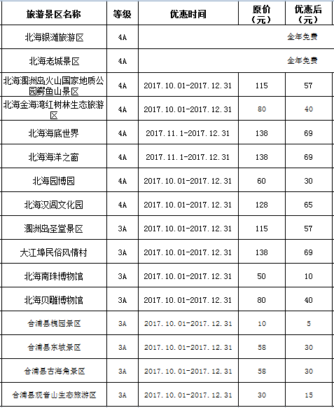 來北海旅行有福了,所有A級(jí)景區(qū)門票 五折優(yōu)惠