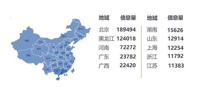 從地域分析看,除廣西本地的網(wǎng)友外,北京和黑龍江的網(wǎng)友對(duì)廣西旅游的相關(guān)信息也同樣關(guān)注。