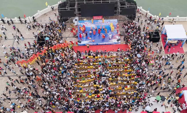 ▲“壯族三月三”期間游客在外沙島參加疍家文化體驗(yàn)行活動(dòng)。