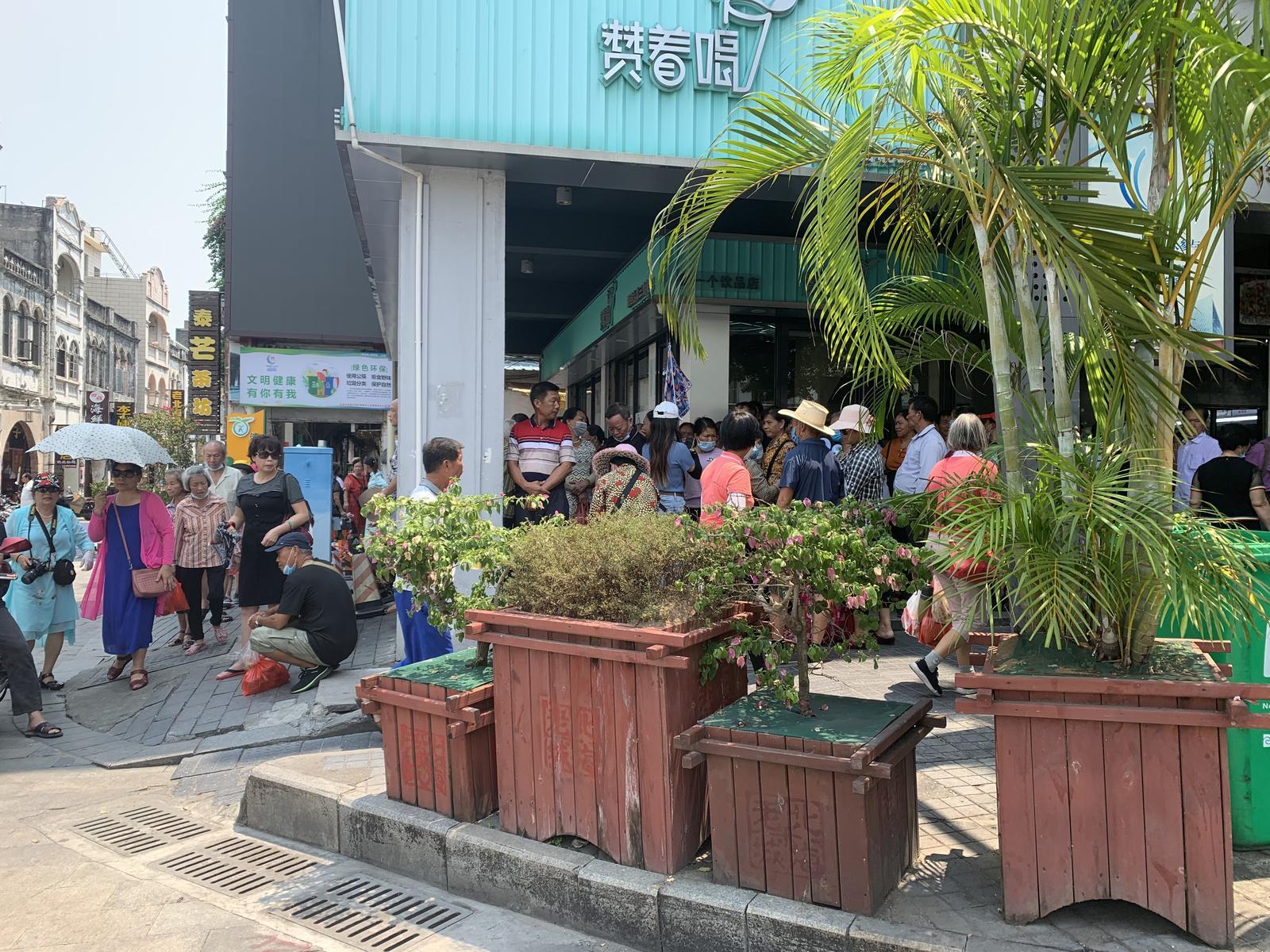 今天路過老街,看到老街路口排排站了一大波人,聽到導游拿著小喇叭喊:“靠邊站,讓電動車過去”