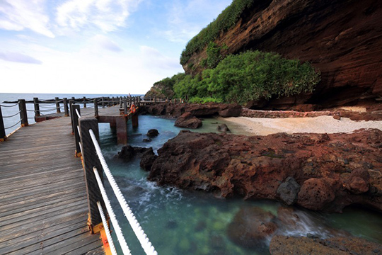 下午游覽:【石螺口海灘】這里被稱(chēng)為潿洲島最美海灘,游覽【滴水丹屏】景區(qū)絕壁上部綠樹(shù)成蔭,壁上隙常有水溢出,一點(diǎn)點(diǎn)往下滴,如珠簾垂掛。參觀【天主教堂】該教堂由法國(guó)巴黎外方傳教會(huì)傳教士修建,落成于1880年。該教堂為哥特式建筑,樓高21米,總建筑面積774平方米。是清末“雷廉”地區(qū)一座最為宏偉的教堂(不包含景區(qū)電瓶車(chē)20元/人)(游覽時(shí)間約30分鐘)。游覽【五彩灘景區(qū)】景區(qū)位于潿洲島東面,退潮后巨大的火山巖石一層一層的,在陽(yáng)光的照射下特別的壯觀,巖石上一洼一洼的海水,在藍(lán)天的映射下呈現(xiàn)出迷人的藍(lán),這里是拍攝的絕佳位置(海邊礁石易滑倒,請(qǐng)注意安全。