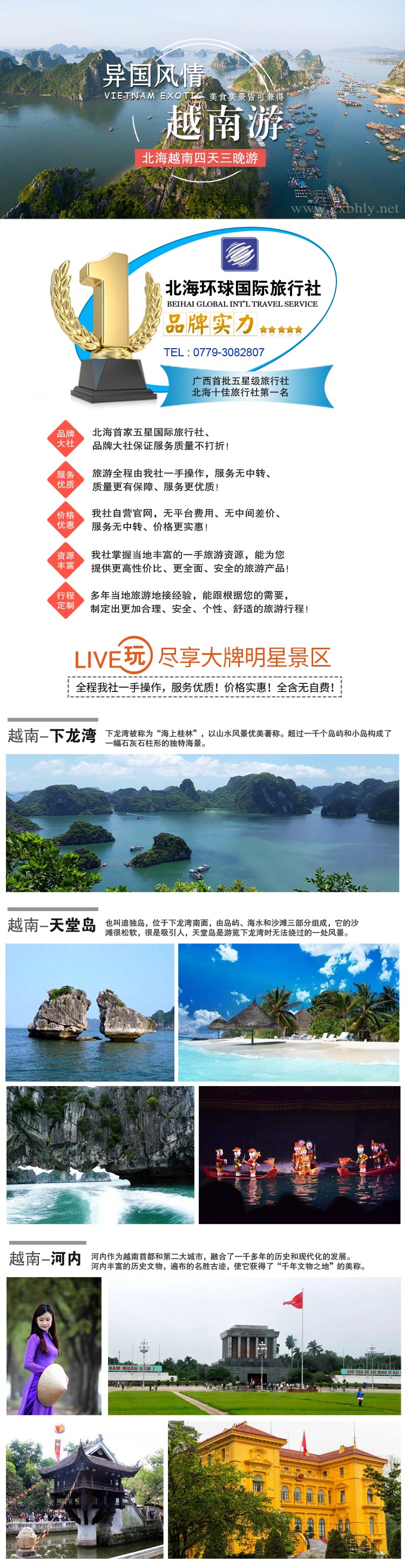 您當(dāng)前所處的位置: 廣西北海旅行社首頁 > 北海到越南旅游 四天三晚全程無自費(fèi) > 詳細(xì)內(nèi)容