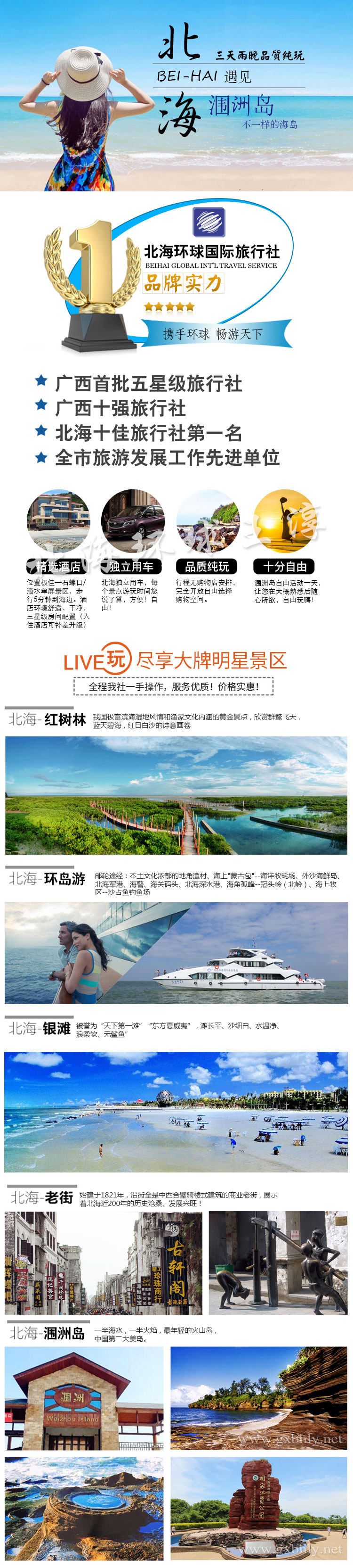 1、以上報(bào)價(jià)包含景點(diǎn)門票:環(huán)島游船票228元/張、紅樹林、紅樹林趕海205元/人、北海潿洲船票300元/人、潿洲島上島費(fèi)98元/人。