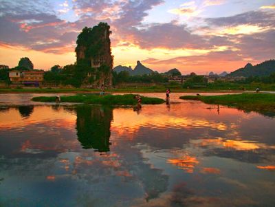早餐后,乘車約90分鐘抵達陽朔,乘船游覽聞名中外的【漓江竹筏】體驗“世界上最美麗的地方”,“江作青羅帶,山如碧玉簪”;船行江中,宛如迎面打開一幅幅奇妙山水畫卷,真正體會到“舟行碧波上,人在畫中游”的絕美漓江仙境,觀奇峰倒影、碧水青山、牧童悠歌、漁翁閑釣、古樸的田園人家、清新的呼吸,一切都在詩情畫意中! 之后我們便在陽朔的餐廳享用中餐,之后乘車游覽陽朔【十里畫廊】沿路風景秀麗,如詩如畫,十里畫廊主要景觀有佩桃獻壽、海豚出水、尼姑下山、火焰山、八戒曬肚、金貓出洞、馬象奇石、龍角山、猴子民愁、駱駝過江、青厄風光、古榕美景、美女梳妝等。