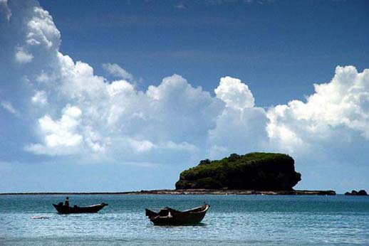 在高空鳥瞰,面積為25平方公里的潿洲島猶如一枚翡翠漂浮于湛藍(lán)的大海中。踏上這座火山島,撞入眼簾的是奇特的海蝕海積地貌與火山熔巖景觀――豬仔嶺憨態(tài)可掬,鱷魚石栩栩如生,滴水巖泉水叮咚,紅色火山巖好象剛剛噴發(fā)過……位于盛堂村的法國天主教堂,更是在19世紀(jì)末就落戶島上,材料全部取于島上的珊瑚、巖石,歷經(jīng)百年歲月,依然堅(jiān)固如初。四百多年前,明代著名戲劇家湯顯祖游覽該島,寫下“日射潿洲廓,風(fēng)斜別島洋”的詩句。