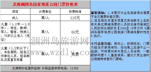 潿洲島上島費(fèi)(各大景點(diǎn)通票):115元/人