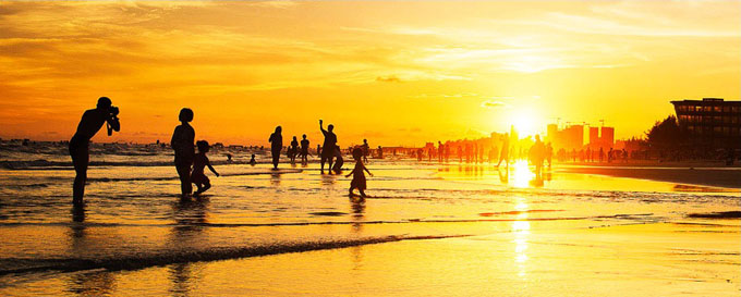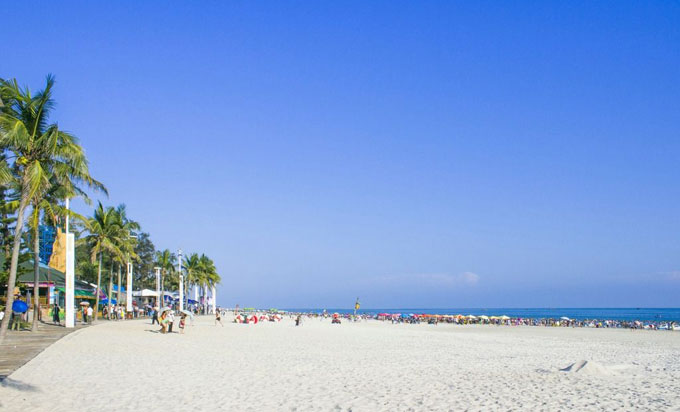 銀灘是北海主要旅游點(diǎn),是國(guó)務(wù)院1992年10月4日批準(zhǔn)建立的國(guó)家級(jí)旅游度假區(qū)。度假區(qū)位于北海市東南部海濱,東至大冠沙,西起僑港鎮(zhèn)漁港,銀灘東西綿延約24公里。北海銀灘原來(lái)叫"白虎頭",因?yàn)閺牡貓D上看整個(gè)區(qū)域象一個(gè)張開(kāi)嘴的大白虎。北海沙灘上的沙是上等的石英砂,在陽(yáng)光的照射下,潔白、細(xì)膩的沙灘會(huì)泛出銀光,故后改稱(chēng)銀灘。這里的海水水質(zhì)清潔,透明度在2米以上。而且這里的海水退潮快,漲潮慢,所以游泳安全系數(shù)很高,銀灘附近海域每年有9個(gè)多月可以入水游泳。這里空氣中負(fù)離子含量為內(nèi)地城市的50至l000倍,所以特別清新,是各類(lèi)慢性及老年性疾病患者最適宜的療養(yǎng)場(chǎng)所,有"南方北戴河"之譽(yù)。