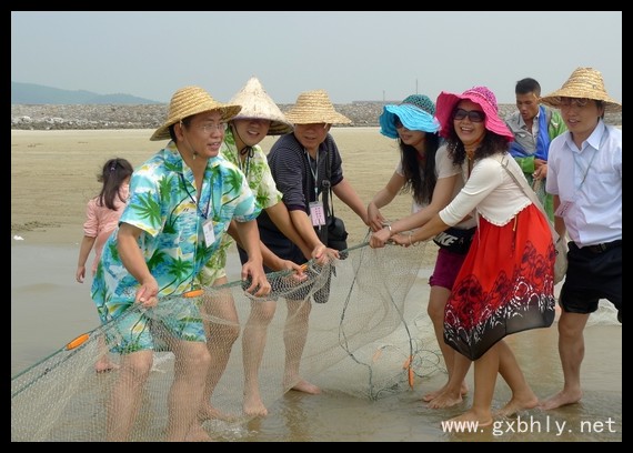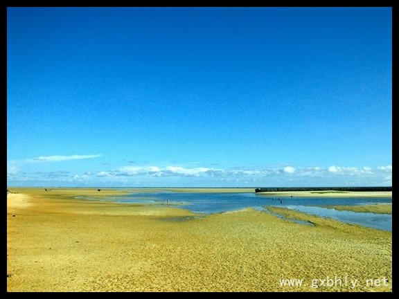 乘快艇登陸黃金海岸(趕海樂園),在漁民的帶領(lǐng)指導(dǎo)下挖沙蟲、捉螃蟹、挖螺、拉大網(wǎng)、下地籠、撿貝殼。 這里灘涂寬闊、沙細白灘潔凈,海水清澈。風景優(yōu)美。這里盛產(chǎn)沙蟲、螃蟹、泥蟲,多種形狀各異的海螺、貝類、魚類等。特別是沙蟲,味道極其鮮美,是名貴的海鮮。北海因為海灘生態(tài)環(huán)境好,所產(chǎn)的沙蟲是全國最好的。