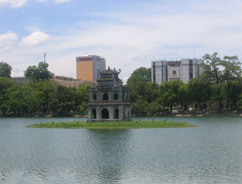 還劍湖是越南河內(nèi)風(fēng)景區(qū),越南首都河內(nèi)眾多大小湖泊中最著名的一個,位于市中心區(qū),南北狹長,呈橢圓形,面積約 12 公頃。過去有水道與東距不遠(yuǎn)的紅河相通,后來被河堤隔斷。湖岸四周樹木青翠,濃蔭如蓋。湖水清澈如鏡,幽雅嫻靜,平均水深 1.5 米左右。岸邊伴有筆塔、和風(fēng)塔、水榭等古建筑,水中有玉山祠、棲旭橋、鎮(zhèn)波亭和龜塔等勝跡點綴,是河內(nèi)第一風(fēng)景區(qū)。還劍湖原為珥河支流,后因其北、東兩面通珥河的水道淤塞而成為湖泊。李、陳兩朝時被稱為綠水湖,后來因此湖被作為操練和檢閱水軍的場所而改名為水軍湖,還曾一度改稱左望湖。