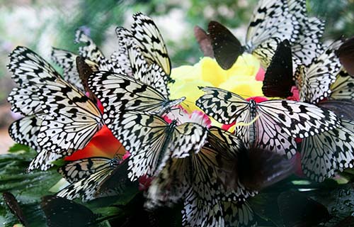 海南的亞龍灣蝴蝶谷是中國迄今為止第一個最大的網(wǎng)式蝴蝶園,占地面積1.5公頃,于1997年10月26日正式對外營業(yè)。 蝴蝶谷按蝴蝶形態(tài)設計了5個展廳,谷內(nèi)有大型網(wǎng)式蝴蝶園、蝴蝶生態(tài)觀賞園、標本展覽館、蝴蝶繁殖園和以蝶文化商品為主的購物中心及工藝品制作室,可以使游客對蝴蝶生態(tài)過程有較感性的認識。